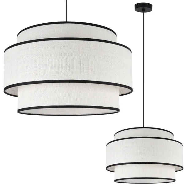 LAMPA WISZĄCA SUFITOWA ŻYRANDOL OKRĄGŁY BIAŁY PODWÓJNY ABAŻUR BOHO JUTA E27