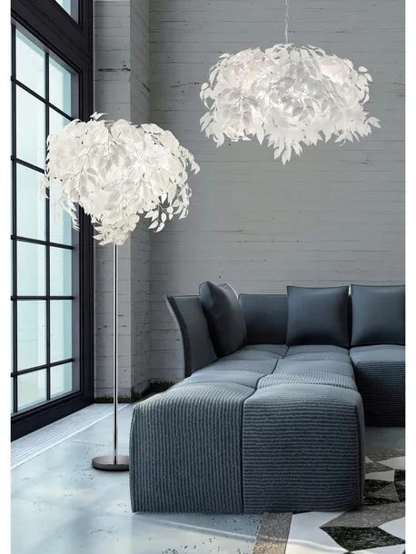 Lampa wisząca 4 punktowa z motywem roślinnym. Ozdobne listki nadają lampie wyjątkowego charakteru i stylu. Elementy metalowe wykończone w chromie. Możliwość regulowania wysokości.