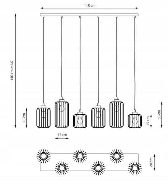 Lampa Wisząca VANDER 6 Czarny Nowoczesna Klasyczna