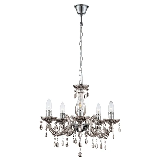 Elegancki żyrandol 5-punktowy w kolorze chrom i szary – styl glamour i klasyka w jednym!