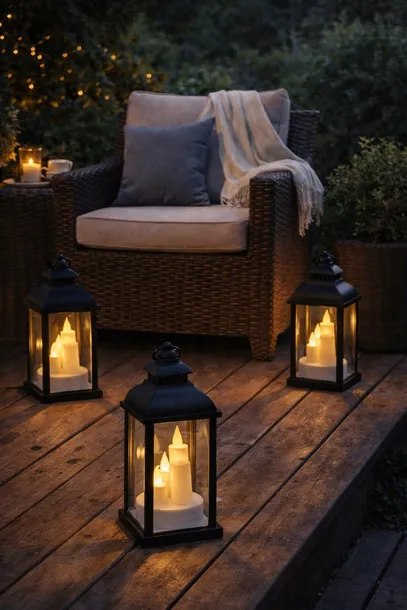 Stylowa latarenka LED to elegancka dekoracja, która wprowadzi do wnętrza lub na taras przytulną atmosferę. Wewnątrz lampionu znajdują się trzy świece LED z realistycznym efektem płomienia, dzięki czemu latarenka wygląda jak tradycyjna świeca, ale jest znacznie bezpieczniejsza w użytkowaniu.