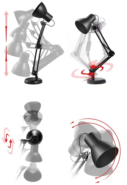 - Sprężyny umożliwiają różne ustawienia lampy.
