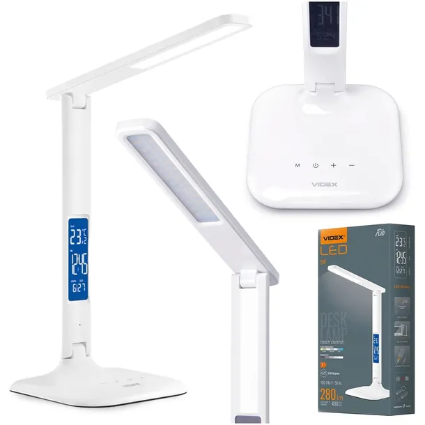 ➡️ Nowoczesna lampka biurkowa LED 5W w eleganckim białym kolorze to idealne rozwiązanie do pracy, nauki i codziennego użytku. Wyposażona w intuicyjne sterowanie dotykowe oraz praktyczny wyświetlacz LCD z funkcją zegara, daty i temperatury, zapewnia nie tylko komfortowe oświetlenie, ale też dodatkową funkcjonalność. Regulowane ramię pozwala dostosować kąt padania światła, a energooszczędna technologia LED gwarantuje długą i wydajną pracę.