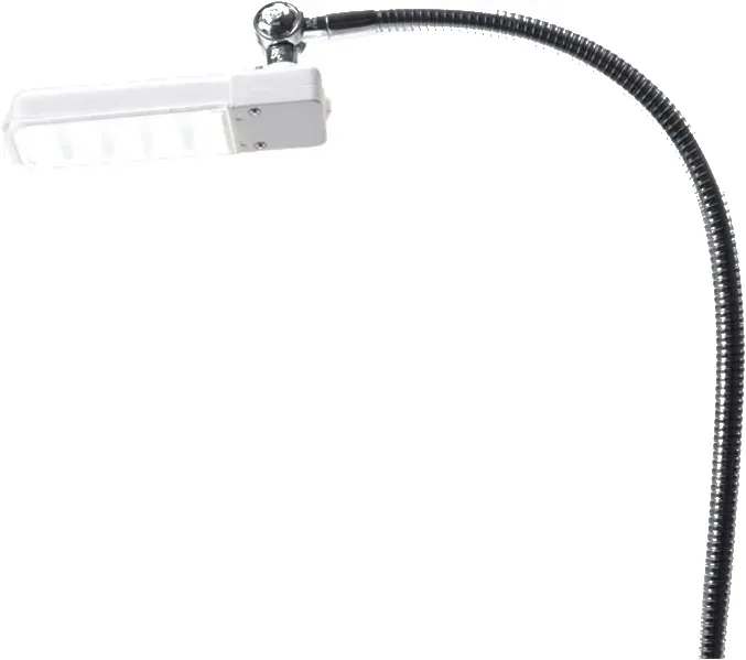 Specjalistyczna lampka przeznaczona do maszyn szwalniczych, energooszczędna, diody LED dające: białe, tzw. " zimne " światło, mocowanie do blatu maszyny, zasilanie 230V.