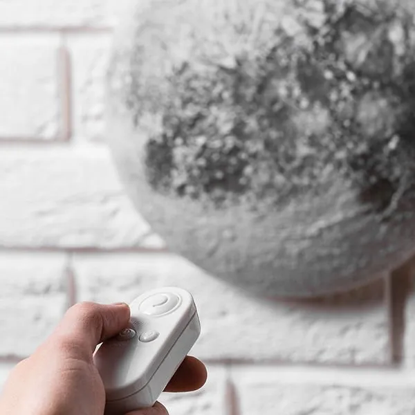 Lampa księżyc to nie tylko trójwymiarowe odwzorowanie powierzchni księżyca, kraterów uderzeniowych i wyżyn - to także prezentacja wszystkich jego faz, którymi sterujesz za pomocą dołączonego pilota. Dodatkową zaletą jest wbudowany czujnik zmierzchu, który zapala lampkę jak zrobi się ciemno - to jak prawdziwy Księżyc w Twoim pokoju. Świetny gadżet który zafascynuje nie tylko dzieci, ale także starszych.