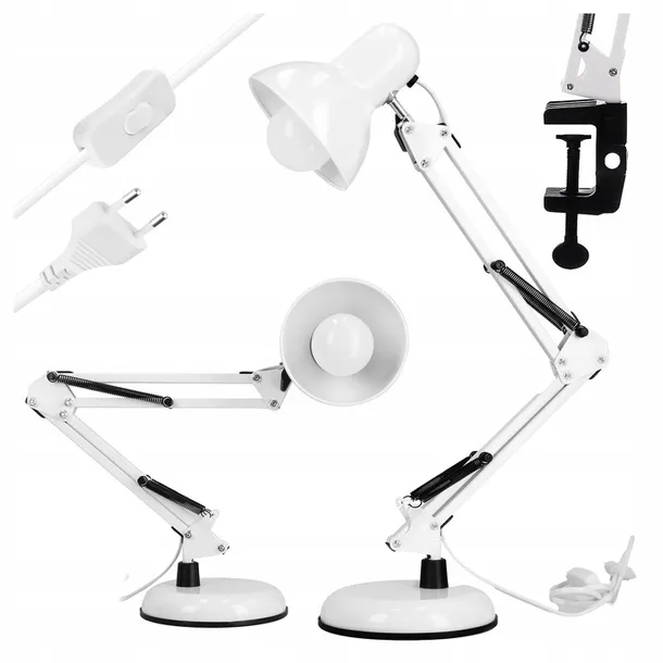 Lampka na Biurko LED Kreślarska Szkolna Regulowana E27 230V Stojąca Klips