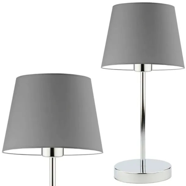 Lampka Nocna Biurkowa Szara Lampa z Abażurem LED E27 Nowoczesna do Sypialni