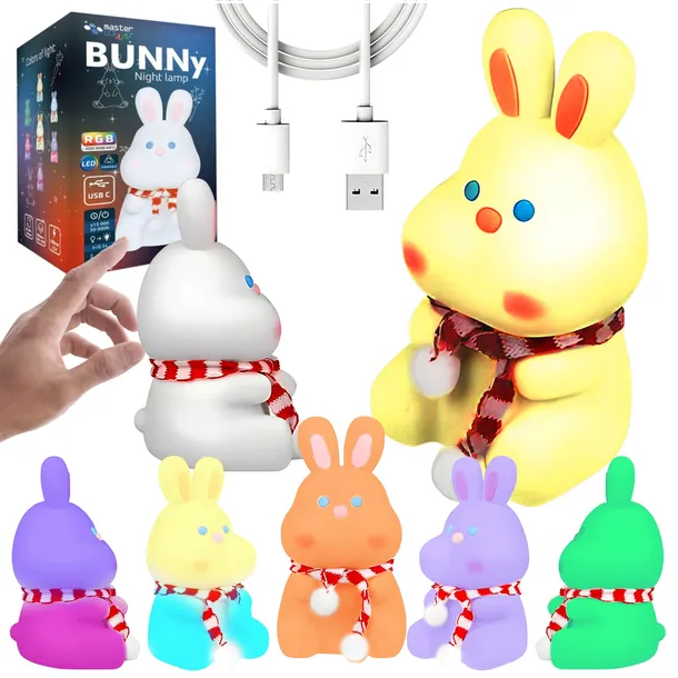 ⭐LAMPKA NOCNA DLA DZIECI LED SILIKONOWA DOTYKOWA MIĘKKA PRZYTULANKA KRÓLIK⭐