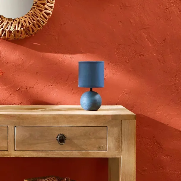 Lampka nocna Timeo to podstawa w kształcie kuli wykonana z ceramiki oraz klosz w kształcie walca wykonany z wytrzymałego poliestru. Lampa na długim, bo aż 120cm kablumoże ozdobić naszą sypialnię lub salon. Cały zestaw nie zawiera żarówki w komplecie.