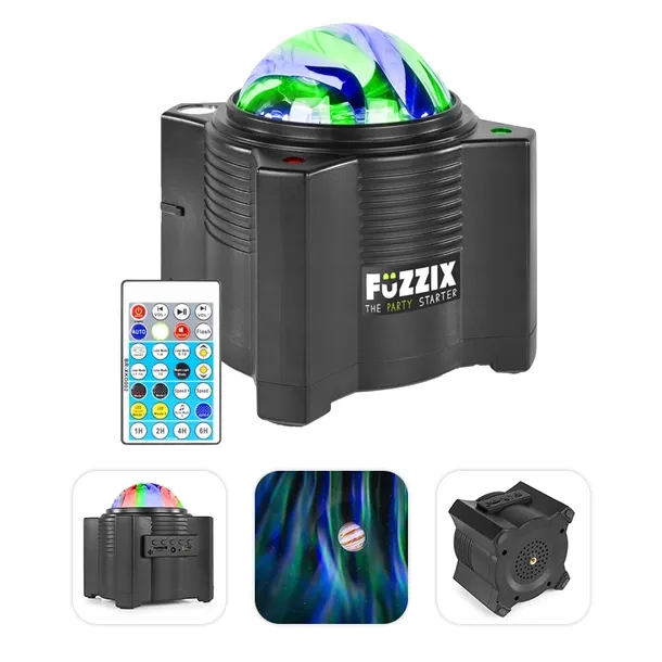 Projektor Aurora to kompaktowy i wszechstronny efekt imprezowy LED, który tworzy niesamowity galaktyczny efekt „zorzy polarnej” z kolorowymi falami poruszającymi się po pokoju. Jest również wyposażony w 15 różnych obiektywów z zapierającymi dech w piersiach zdjęciami wszechświata.