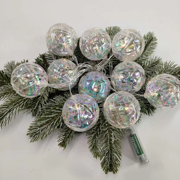 Lampki ledowe w kształcie bombek o tęczowym kolorze.