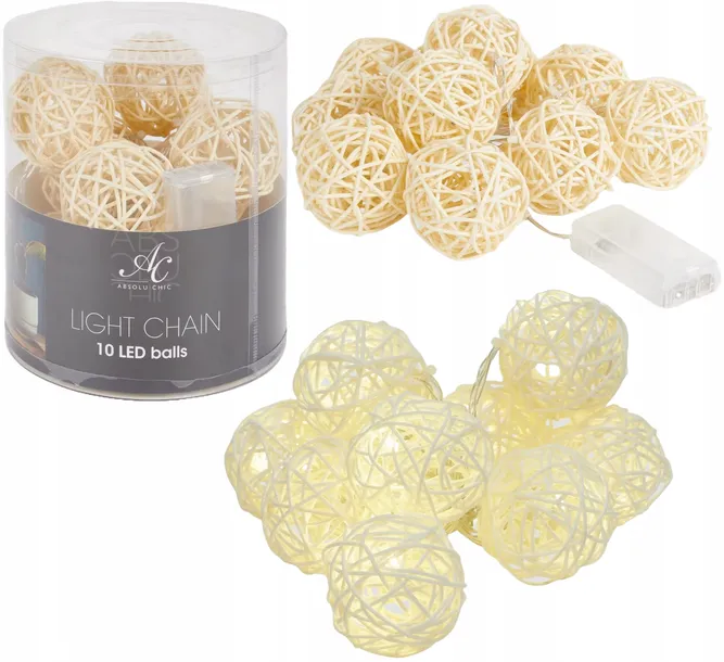 Sznur z 10 lampkami kulami LED do stworzenia miłej atmosfery w domu.