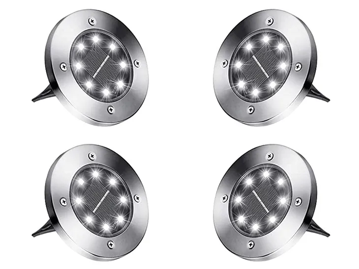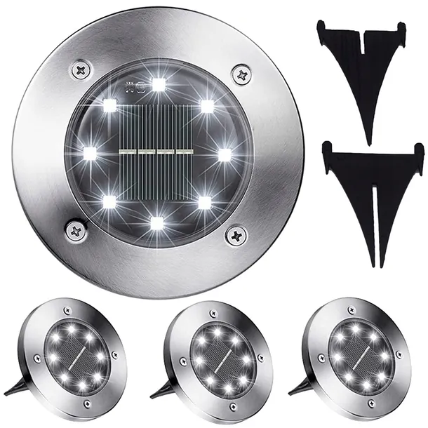 LAMPKI OGRODOWE SOLARNE 8 LED GRUNTOWE Z CZUJNIKIEM ZMIERZCHU ZESTAW 4 SZT