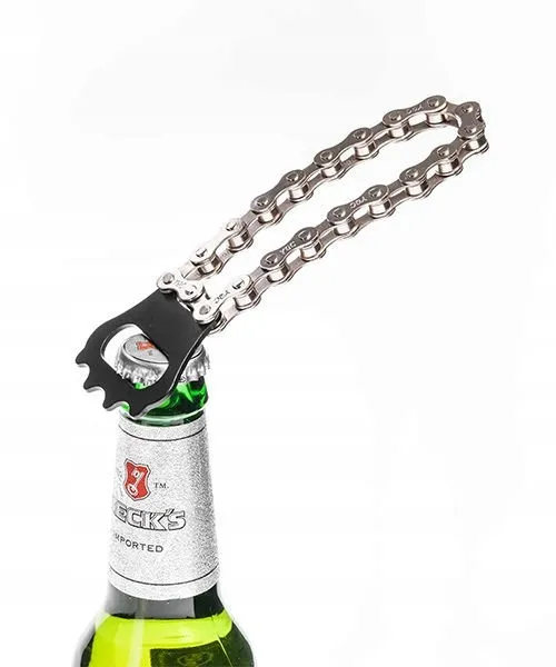 - poręczny otwieracz wykonany z łańcucha rowerowego
