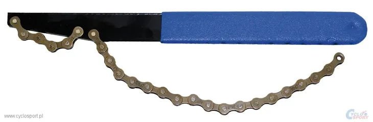 Klucz z łańcuchem służy do przytrzymywania kasety zębatek przy jej demontażu z koła .
