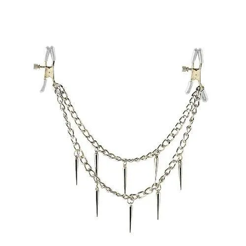Wytrzymałe metalowe zaciski pokryte miękką gumą, te zaciski są idealne dla początkujących, jak i entuzjastów. Siłę zacisku brodawki można regulować obracając śrubę, Łańcuszki łączą oba sutki, co daje niesamowitą stymulację przy każdym ruchu.