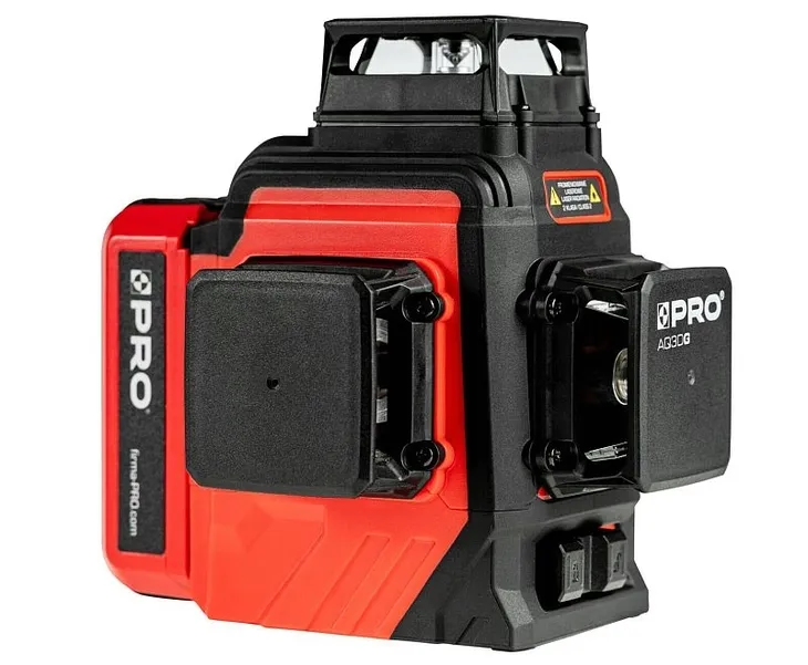 - Laser wieloliniowy PRO-AQ3DG generuje trzy płaszczyzny 360°, jedną poziomą oraz dwie płaszczyzny pionowe przecinające się pod kątem 90°
