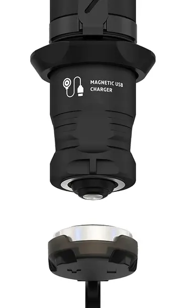 Rozszerzone wyposażenie: dołączony akumulator o dużej pojemności 3500 mAh i szybka ładowarka magnetyczna USB. Latarka jest gotowa do użycia zaraz po wyjęciu z pudełka.