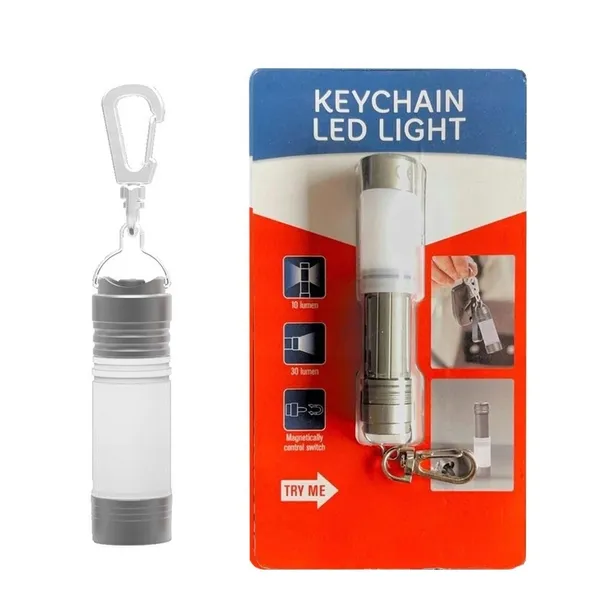 LATARKA BRELOK LEDBreloczek do kluczy z latarką to praktyczny gadżet, który może się przydać w wielu sytuacjach. Możesz z łatwością przymocować go do kluczy, dzięki czemu zawsze będziesz mieć go pod ręką.Latarka o mocy 30 lumenów może świecić z przodu zapewniając jasne i skupione światło. Takie światło sprawdzi się w codziennych sytuacjach. Światło orientacyjne o mocy 10 lumenów, które świeci z boku breloczka dostarcza delikatne i rozproszone światło, które może posłużyć Ci jako światło nocne lub do orientacji w ciemności.Produkt wyposażony jest w obsługę magnetyczną, co ułatwia jego przymocowanie do metalowych powierzchni.Specyfikacja: kolor: srebrny lumeny: 10 / 30 obsługa magnetyczna: tak zasilanie: 3 x baterie LR44 (dołączone do zestawu) barwa światła: zimna biel