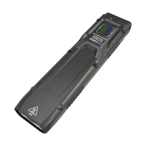 Dodatkowo EDC25 jest wyposażony we wbudowaną baterię litowo-jonową o pojemności 1700 mAh, która zapewnia do 55 godzin pracy. Posiada lampki kontrolne podobne do MH12 Pro, które wyświetlają aktualny poziom jasności i pozostałą moc baterii. Latarka ma również stopień ochrony IP54, co oznacza odporność na kurz i wodę oraz wytrzymuje upadki z wysokości do 1 metra.