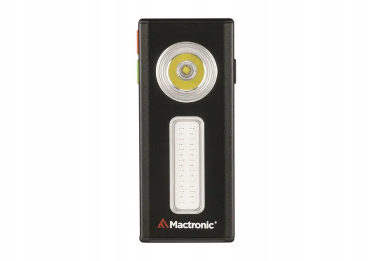 Następca klasycznej latarki na płaską baterię. Każdy z nas ją pamięta, każdy ją miał - latarkę z przesuwanymi filtrami, aluminiową obudową i ciężką baterią cynkowo-węglową, dostępną w kioskach RUCH-u. Mactronic odchudził całą latarkę do 110 gramów - latarka waży tyle co sama bateria cynkowo-węglowa, a jej niewielkie rozmiary powalają na swobodny chwyt jedną dłonią. W pełni naładowany akumulator pozwala na wygenerowanie światła o sile aż 500 lumenów przy czasie pracy 2,5 godziny. Konstrukcja soczewki umożliwia oświetlenie obiektów w oddalonych o 150 metrów. Elektroniczna regulacja mocy światła w zakresie od 500 do 150 lumenów. Przy najniższej sile światła czas pracy wzrasta aż do 6 godzin. W pełni niezależny dwukolorowy panel COB zastępuje filtry generując jednolity strumień światła, odpowiednio koloru zielonego lub czerwonego. Uruchomienie wiązki światła odpowiedniego koloru zapewnia zastosowana w produkcie technologia SURETOUCH. Aby wzbogacić latarkę o dodatkowe funkcjonalności, Mactronic wyposażył latarkę w 3 sposoby mocowania: 2 mocne magnesy, jeden w podstawie, drugi w klipsie latarki do przymocowania np. do karoserii samochodu w przypadku awarii klips pozwalający na zamontowanie latarki na pasku lub w kieszeni koszuli/kurtki przy prowadzeniu prac inspekcyjno-naprawczych haczyk do montażu w warunkach polowych