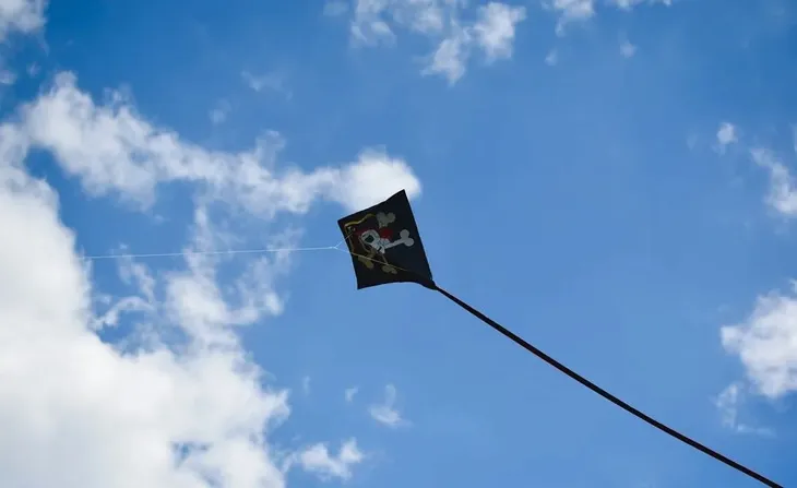 Nieduży latawiec piracki świetnie sprawdzi się podczas wakacji, wycieczki, spaceru, czy też zwykłej zabawy przed domem. Nietypowy motyw i kolorystyka sprawia, że wyróżnia się na tle innych. Czarny latawiec z pirackim motywem fenomenalnie prezentuje się na niebie.