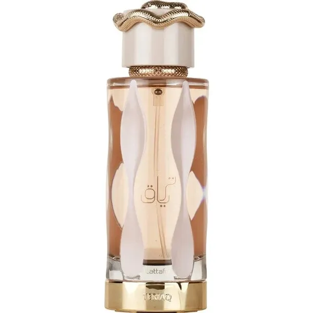 Lattafa Teriaq to woda perfumowana, która zachwyca wyjątkową kompozycją smakowitych i zmysłowych nut, idealna dla osób pragnących podkreślić swoją indywidualność. Już od pierwszego psiknięcia zapach otwiera się słodkimi akcentami karmelu, gorzkiego migdału, różowego pieprzu i soczystej moreli, tworząc bogaty, przyciągający aromat, który intryguje i uwodzi. W sercu Teriaq rozkwitają zmysłowe nuty miodu, rabarbaru oraz białych kwiatów, które nadają kompozycji świeżości i elegancji, a róża wprowadza romantyczny akcent, tworząc harmonię między słodyczą a kwiatowym wyrafinowaniem. Baza zapachu to bogata mieszanka skóry, wanilii, piżma, wetywerii i labdanum, która nadaje całości głębi i trwałości, pozostawiając na skórze ciepły, otulający ślad. Lattafa Teriaq to doskonały wybór na wieczorne wyjścia i specjalne okazje, idealnie podkreślający zmysłowość i pewność siebie każdej kobiety.