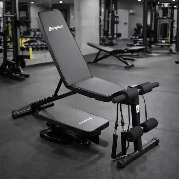 ✅ Połączenie 7-stopniowej regulacji kąta nachylenia z elastycznymi ekspanderami oporowymi pozwala na wykonanie kilkudziesięciu różnych ćwiczeń na klatkę piersiową, plecy, barki oraz ramiona, co skutecznie zastępuje kilka specjalistycznych maszyn. To wszechstronne rozwiązanie sprawia, że możesz przeprowadzić pełny trening siłowy i modelujący, nie inwestując w dodatkowy, drogi osprzęt.