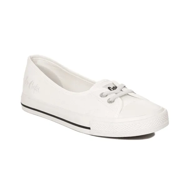 Założony w londyńskiej dzielnicy East End w 1908 roku Lee Cooper ma bogatą historię sięgającą ponad stu lat, dzięki czemu zyskał status kultowej brytyjskiej marki Original Denim. Od skromnych początków, marka Lee Cooper stała się znana jako globalny innowator stylu. Dziedzictwo pionierskich zasad ustanowionych przez Morrisa Coopera znalazło odzwierciedlenie w najnowszej kolekcji obuwia, dostępnego w naszym sklepie internetowym. Trampki, tenisówki damskie Lee Cooper wykonane zostały z tkaniny w kolorze białym. Wnętrze oraz wkładka wykonana została z również białej tkaniny. Okrągły nosek zapewni palcom dużo swobody. Zamiast sznurowadeł zastosowano gumki ściągające. Płaska podeszwa z wysokogatunkowego tworzywa charakterystyczna dla tego typu obuwia ma wysokość 2,5 cm. Lekkie i praktyczne. Doskonale uzupełnią niejedną sportową i codzienną stylizację.