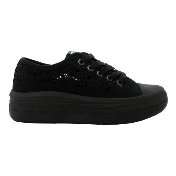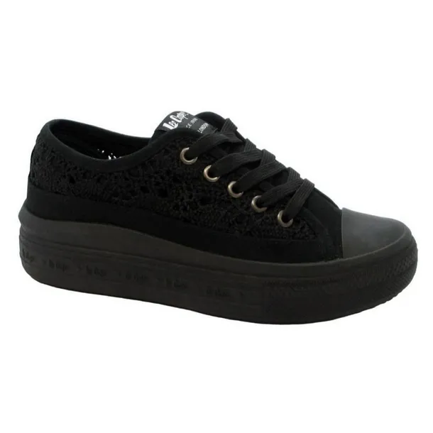 Trampki, tenisówki damskie Lee Cooper wykonane zostały z ażurowej tkaniny w kolorze czarnym. Wnętrze oraz wkładka wykonana została również z czarnej tkaniny. Okrągły nosek zapewni palcom dużo swobody. Tradycyjne wiązanie na sznurówki pozwala na odpowiednie dopasowanie obuwia do stopy. Płaska podeszwa z wysokogatunkowego tworzywa charakterystyczna dla tego typu obuwia ma wysokość 4 cm. Lekkie i praktyczne. Doskonale uzupełnią niejedną sportową i codzienną stylizację.