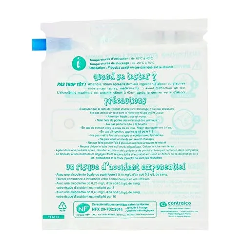 • Ethylotest certyfikowany zgodnie z normą NF x 20-702: 2014.