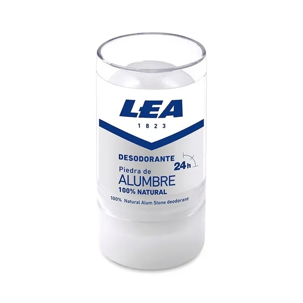Kryształki ałunu w sztyfcie hiszpańskiej firmy LEA w plastikowym opakowaniu z logo producenta. Niezbędna pomoc przy skaleczeniach przy goleniu. Sprawdzi się również świetnie jako dezodorant.