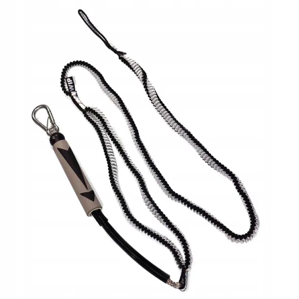 Dzięki swojej elastyczności efektywnie redukuje szarpnięcia, a solidna konstrukcja zapewnia trwałość nawet w trudnych warunkach. Mocowanie do paska lub trapezu sprawia, że leash jest wygodny i nie przeszkadza podczas sesji na wodzie, umożliwiając swobodne manewrowanie. Wyposażony w karabińczyk.