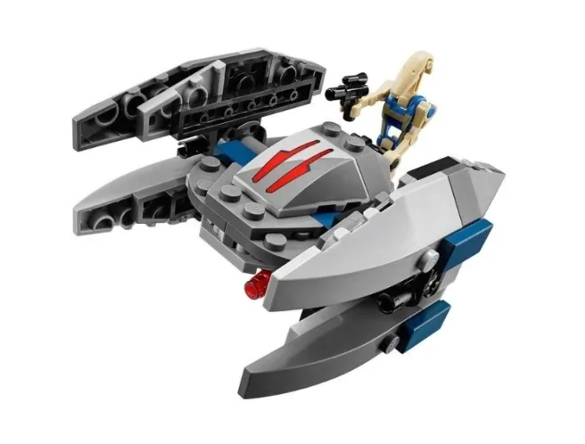 Przygotuj się do ataku na wojska Republiki ze śmiercionośnym mikromyśliwcem z ze stawu Droid Sęp LEGO® Star Wars. Ta ciekawa, pomniejszona wersja bojowego droida LEGO® Star Wars Separatystów ma dobrze oddane szczegóły, w tym 2 pociski, skrzydła zmieniające pozycję w trybie lotu i maszyny kroczącej, a nawet miniaturowy kopkpit, w którym można posadzić Droida-Pilota. Wskakuj za stery, przechodź do lotu i ruszaj zapolować na siły Republiki na niebie ponad planetą Coruscant! Zestaw zawiera droida-pilota z miotaczem.