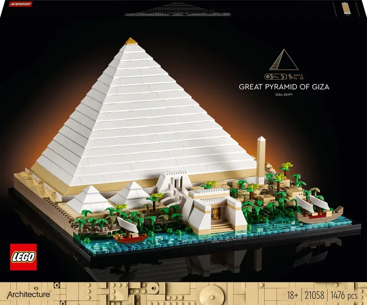 - Projekt konstrukcyjny dla dorosłych, który przeniesie Cię w czasie — model LEGO® Architecture 21058 przedstawia piramidę Cheopsa i jej okolicę tak, jak mogły wyglądać w starożytności
