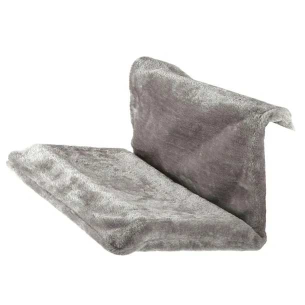 Konstrukcja pozwala na zawieszenie na większości standardowych grzejników panelowych dzięki uniwersalnemu uchwytowi, bez konieczności regulacji. Stelaż z wytrzymałego metalu gwarantuje stabilność, a pokrycie z miękkiego pluszu w eleganckim, ciemnoszarym kolorze zapewnia ciepło i komfort. Pokrowiec można łatwo zdjąć i wyprać.