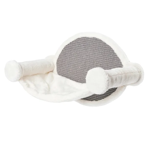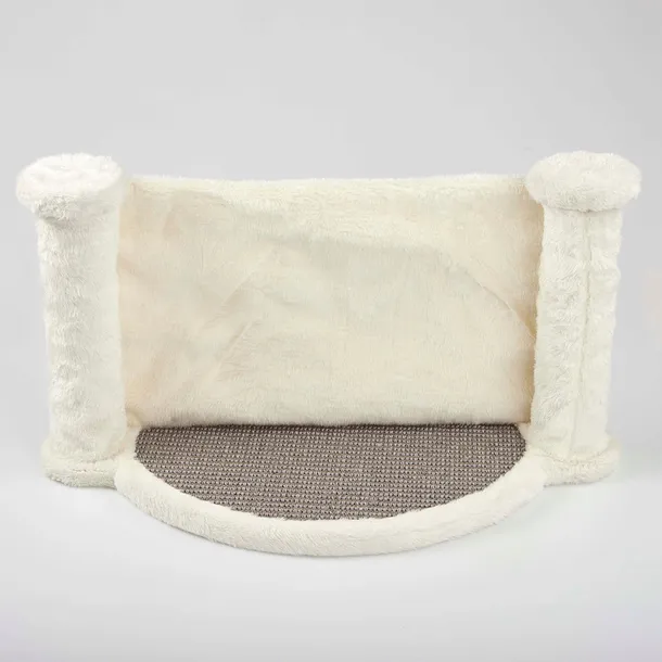 Powierzchnia półki wykończona jest miękkim pluszem w jasno-kremowym kolorze, zapewniając kotu komfort podczas odpoczynku. Boczne słupki Ø 5,2 cm również pokryte pluszem są przyjemne w dotyku. Fragment przy ścianie z naturalnego sizalu umożliwia drapanie i chroni ścianę przed zarysowaniami.