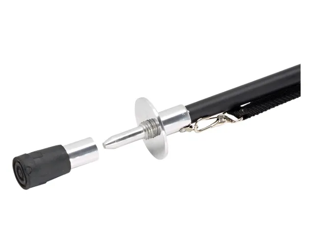 Wykonany z lekkiego metalu, praktyczny sztyft podsiodłowy waży tylko ok. 1000g. Rączkę można rozłożyć i pełnić funkcję siedziska. Wysokość siedziska regulowana w zakresie od 54 do 75 cm, z metalową płytką zabezpieczającą przed zapadnięciem się, ze skórzanymi paskami do zawieszenia wokół ciała.Maksymalne obciążenie: 100 kg.