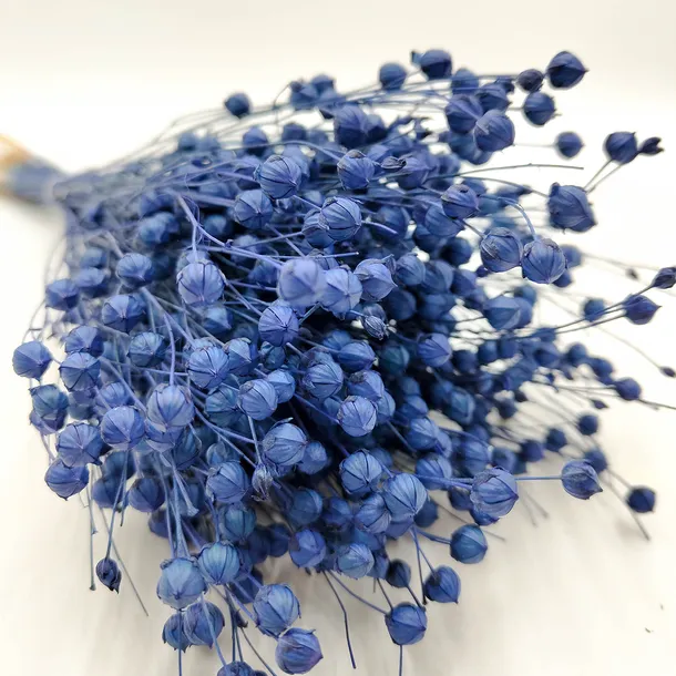 Suszony len w kolorze niebieskim to wyjątkowy akcent florystyczny, który łączy subtelną teksturę z naturalnym wdziękiem. Barwiony na błękit, dodaje wnętrzom spokoju i delikatności, nawiązując do stylu boho, rustykalnego czy skandynawskiego.