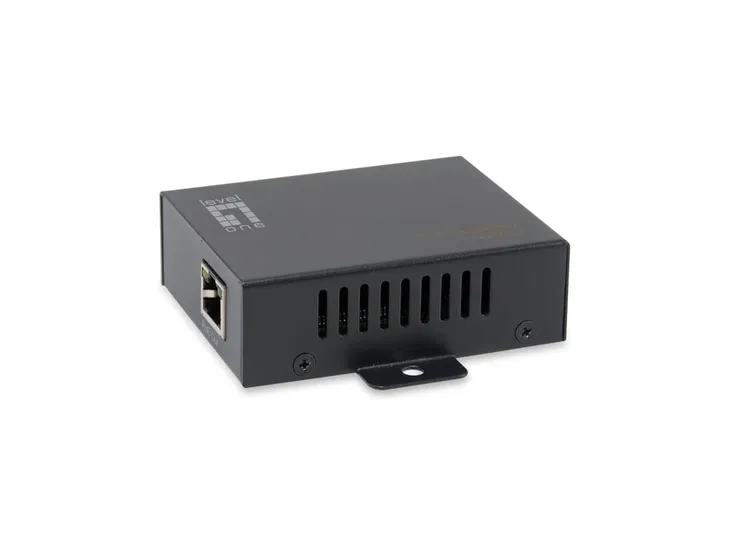 LevelOne POR-0111. Standardy komunikacyjne: IEEE 802.3, IEEE 802.3af, IEEE 802.3at, IEEE 802.3u, IEEE 802.3x. Kolor produktu: Czarny, Maksymalny zasięg działania: 100 m. Certyfikaty zgodności: RoHS, UKCA, CE. Szerokość produktu: 84 mm, Głębokość produktu: 65 mm, Wysokość produktu: 24 mm. Liczba dołączonych produktów: 1 szt.