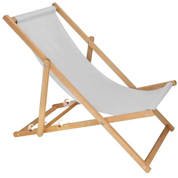 Marka: Springos® | Kolor leżaka: brązowy | Kolor tkaniny: jasny szary | Materiał: drewno bukowe + tkanina