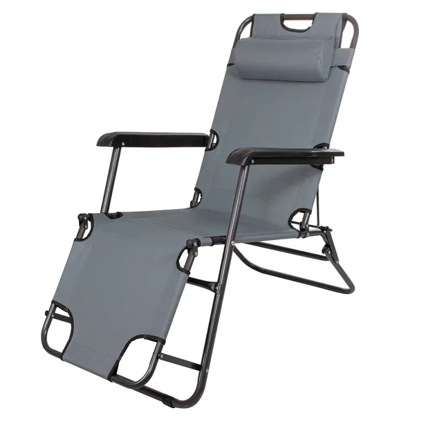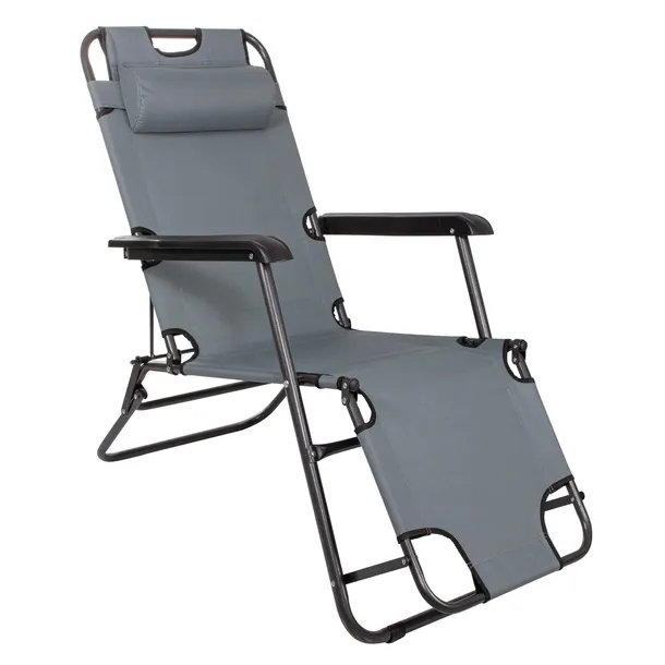Zaokraglone podłokietniki zapewniają wygodną pozycję siedzenia. Możliwość regulacji pozycji siedziska doskonale sprawdza się aby leżeć podczas wypoczynku czy siedzieć niedaleko ogniska. Ergonomiczny zagłówek zdecydowanie zwiększa komfort podczas opalania się.
