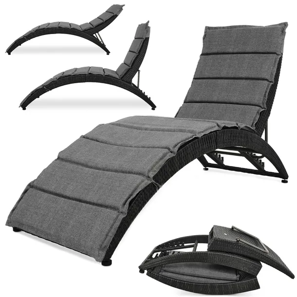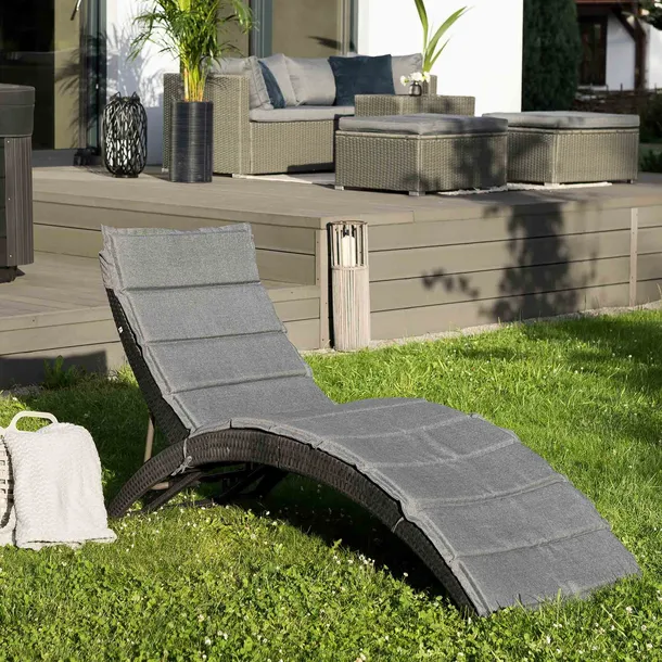 Leżak ogrodowy składany regulacja oparcia na balkon technorattan z poduszką