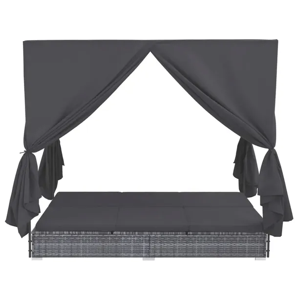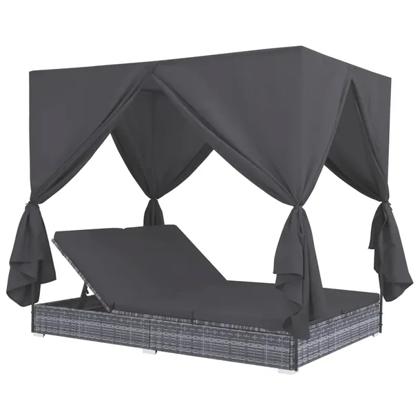 Leżak ogrodowy z baldachimem, rattan PE, szary
