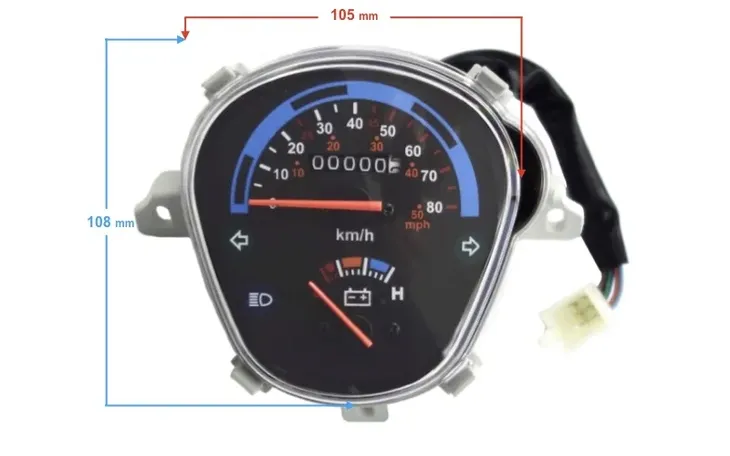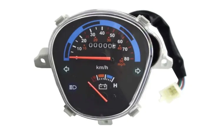 - funkcje: prędkościomierz, licznik przebiegu całkowitego, wskaźnik poziomu paliwa, kontrolki kierunkowskazów i świateł drogowych