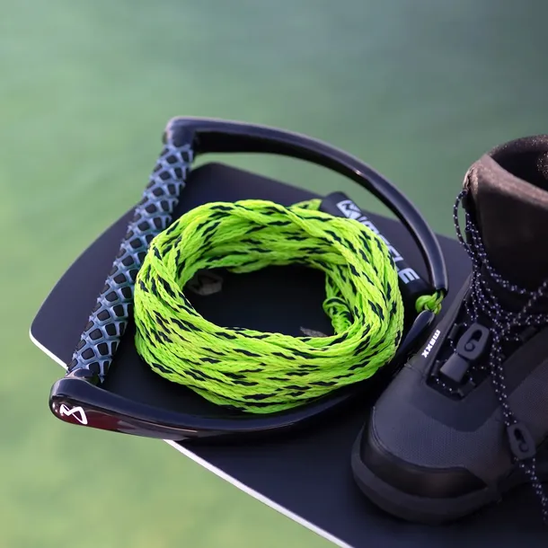 ✔ Linka główna wykonana z odpornego na rozdarcia 12-żyłowego polietylenu jest mało rozciągliwa i ma zoptymalizowaną długość do wakeboardingu.