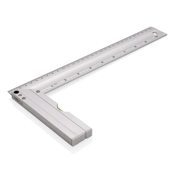 Linijka 30 cm, 2 skale (cm i cale), poziomica, kątomierz, wykonana z aluminium