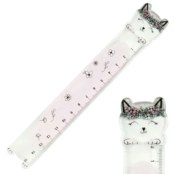 Półprzezroczysta linijka - podziałka 15 cm, wykończona uroczą główką kotka.