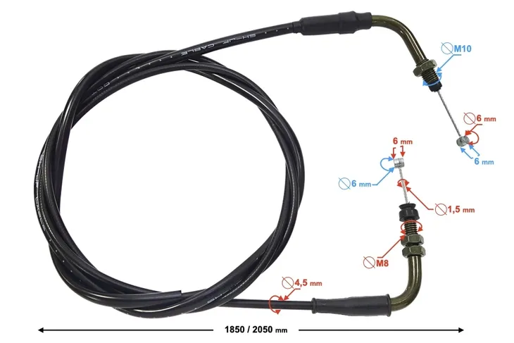 - długość pancerza linki: 1850 mm