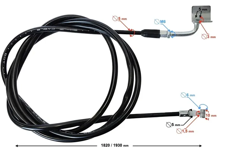 - długość pancerza linki: 1820 mm